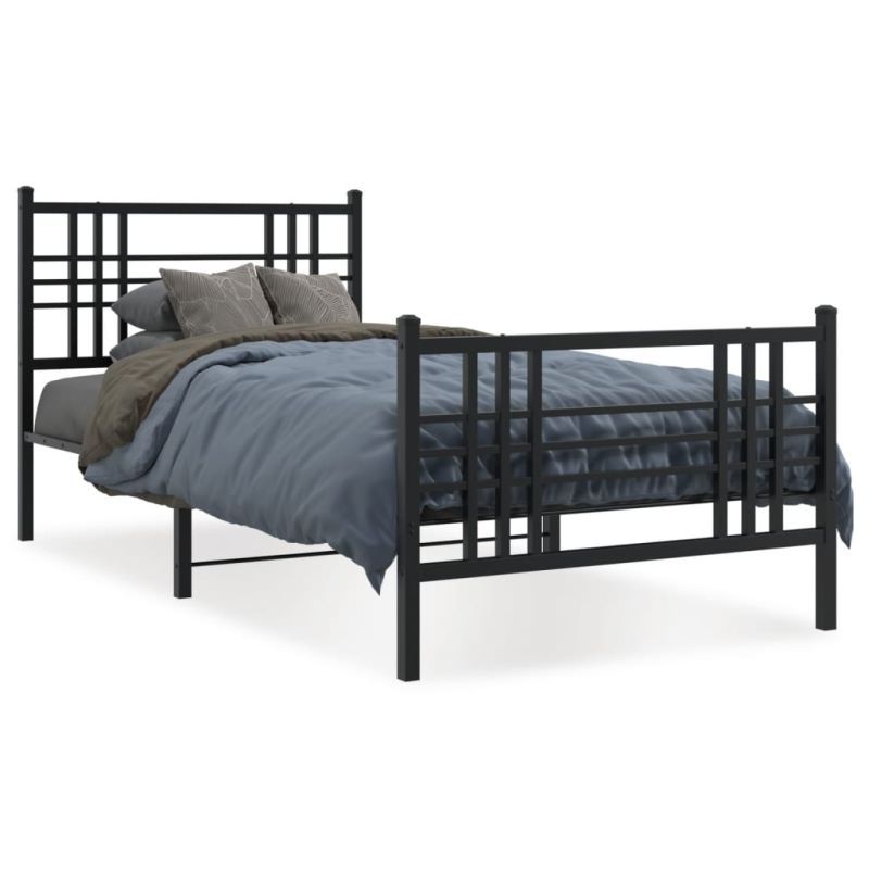 Начало Мебели Легла и аксесоари Легла и рамки за легла Метална рамка за легло с горна и долна табла, черна, 90x190 см