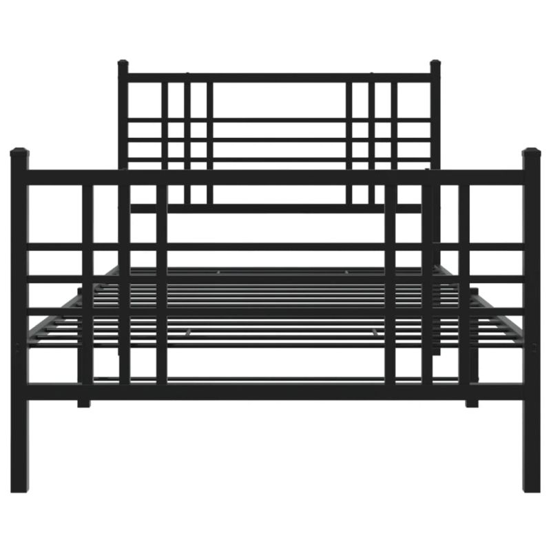 Метална рамка за легло с горна и долна табла, черна, 90x190 см