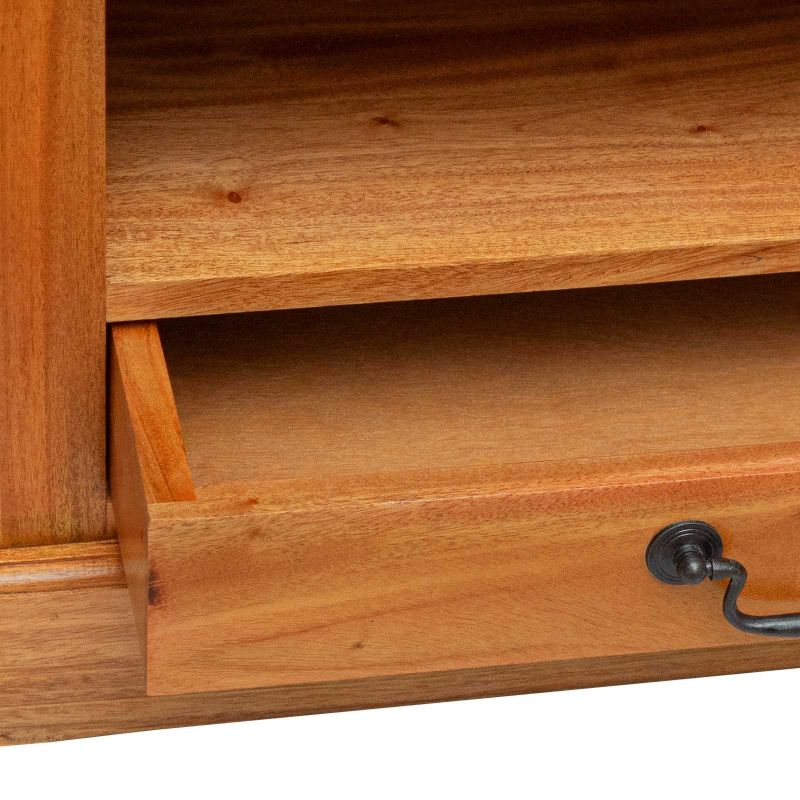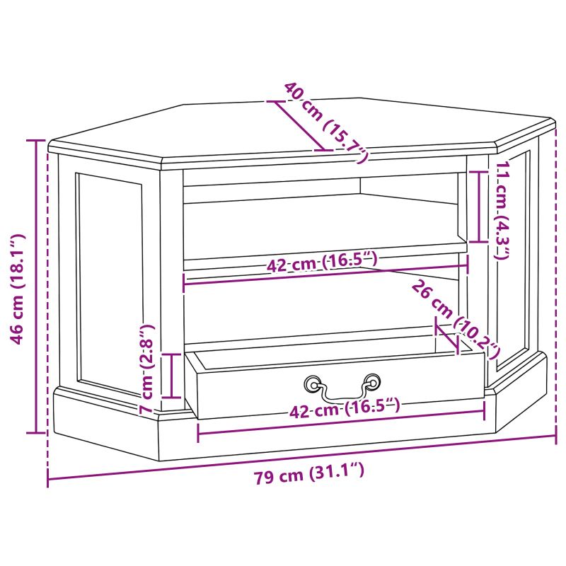 Този ъглов ТВ кабинет е стилно парче мебел, което лесно внася ръстик чар в всеки дом. Създаден от здраво масивно махагоново дърво, той притежава естествена красота и уникален стил. С топлите си кафяви цветове и красиви текстури, кабинетът е идеален за любители на функционалността и дизайна. Поставете го в хола или спалнята и се насладете на естетическата привлекателност и практичността му. Завършване на материала: ТВ кабинетът има красив махагонов финиш, който показва червеникави нюанси и финни текстури. С времето, богатството на цветовете става още по-ясно. Здрави компоненти: Изработен от масивно махагоново дърво, всеки елемент осигурява стабилност и поддържа различни медийни устройства. Дръжките са проектирани с внимание, за лесен достъп. Функционалност: Проектиран да отговаря на нуждите ти, кабинетът е идеален за организиране на устройства, DVD-та и игри. Не е нужна сглобка: Доставя се готов за ползване, което ти спестява време и усилия. Лесна интеграция в всяко помещение. Лесна поддръжка: Прости инструкции за грижа осигуряват дълговечност. Прахосвай редовно с мека кърпа; избегни агресивни химикали.