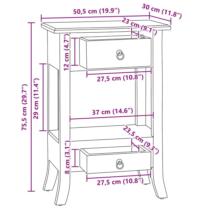 Начало Дом и градина Мебели Маси Акцентни маси Маси за дивани Конзолна маса с чекмедже Естествен 50,5 x 30 x 75,5 см