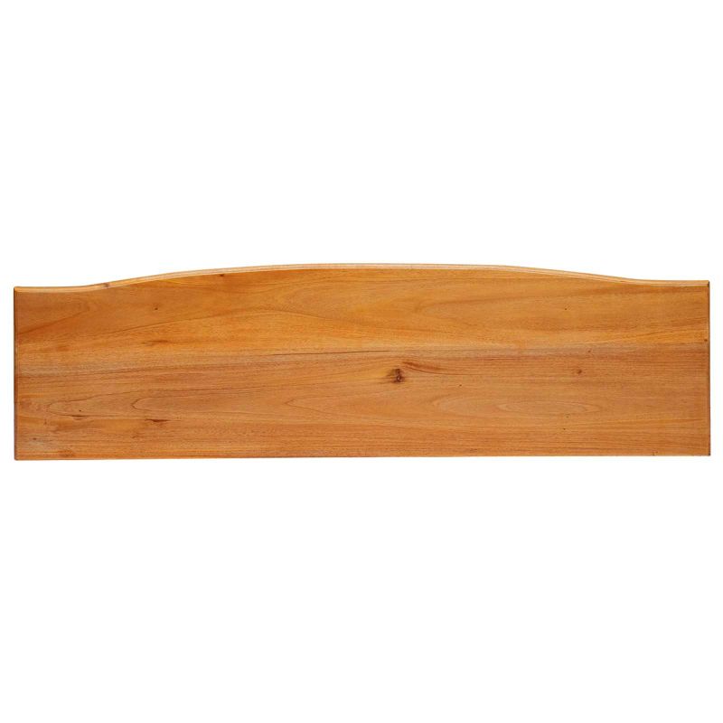 Тази рустикална конзолна маса е истинско произведение на изкуството, което може да освети всяко пространство – вход, всекидневна или коридор. С размери 115 x 32 x 76 см, тя предлага уникален рустикален чар, който пасва на различни стилове на дома. Изработена от масивно махагоново дърво, тя привлича вниманието с естествената си шарка и червеникаво-кафявия си цвят. С винтидж покритие и практичен дизайн, е идеална както за декорация, така и за практична употреба – когато идваш у дома, можеш удобно да поставяш свои любими неща и книги. Масивно махагоново дърво: Изработена от масивно махагоново дърво, тази маса осигурява стабилна структура за дълготрайна употреба. Естественият дървесен текстур е видим на повърхността, предлагаща последователно покритие. Робустният плот поддържа различни декоративни елементи или всекидневни вещи. Шест складащи чекмеджета: С шест чекмеджета с метални дръжки, тази маса предлага място за малки предмети. Закръглените ръбове осигуряват гладко покритие. Боядисаната повърхност предоставя допълнителен защитен слой на структурата от махагон. Не е необходимо сглобяване: Тази конзолна маса се доставя напълно сглобена, позволявайки незабавно поставяне след пристигането. Стабилната конструкция предлага надеждна опора за повърхността в закрити пространства без нужда от ръчно инсталиране или инструменти. Универсално разположение: Подходяща за коридори, входни пространства, всекидневни или спални, тази маса се адаптира към различни планировки на стаите. Тънкият й дизайн функционира като страничен модул за показване на предмети или организиране на вещи в общи или лични пространства. Лесна поддръжка: За почистване е достатъчно да се избърше с мека кърпа и да се държи далеч от пряка топлина. Избягвайте агресивни химикали, за да запазите повърхността на дървото и да поддържате целостта на материала с времето.