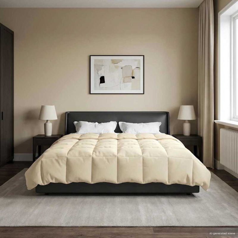 Този модерен зимен дюшек предлага перфектна комбинация от стил и комфорт. С квадратен модел, той е създаден, за да поддържа топлината, а елегантният му вид го прави подходящ за всяка спалня. Практичните му характеристики гарантират, че ще се чувствате уютно и в безопасност, независимо дали спите сами или с близките си. Правоъгълната форма и меките материи правят този дюшек прекрасен избор за зимните нощи. Микрофибърна изработка: Дюшекът от микрофибър предлага невероятно меко усещане, което засилва комфорта при сън. Микрофибърът е устойчив на намачкване и запазва формата си и свежестта с времето, което го прави любим елемент в дома. Фибърен пълнеж: Напълнен с фибър, дюшекът предлага топлина и изолация, без да е обемен. Тази функция е идеална за комфорт при студени зимни нощи, с отлично запазване на температурата. Квадратен модел: Специално проектиран с квадратни слоеве, дюшекът има текстурен дизайн, който не само е красив, но и гарантира, че пълнежът остава равномерно разпределен за постоянен комфорт. Двустранен плат: Можете да обърнете дюшека за ново усещане, ползвайки мекото микрофибърно и кадифено покритие. Тази особеност добавя разнообразие и ще ви служи дълго. Простота на поддръжката: Дюшекът е лесен за поддържане и може да се пере в машина. Просто го перете на хладно и го сушете на ниска температура, за да върнете естествената му форма и въздушност. Тази лесна поддръжка прави грижите за него безпроблемни.