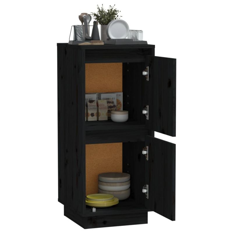 Сайдборд, черен, 31,5x34x75 см, бор масив