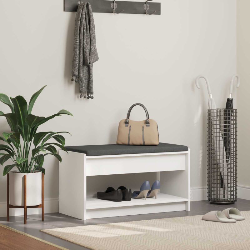 Тази модерна пейка за коридор комбинира стил с функционалност. С елегантен без облегалка дизайн, тя подчертава всеки съвременен коридор или вход. Изработена от здрава инженерна дървесина с удобна тъканна възглавница, пейката е както привлекателна, така и удобна, идеална за обуване на обувки или оставяне на вещи. Със съвременния си силует, тя се вписва лесно в различни декори, добавяйки минималистична елегантност в дома ти. Дизайн от инженерна дървесина Тази пейка е изградена от инженерна дървесина, с надеждна конструкция и изтънчен вид. Шарки на дървесината добавят интерес и щрих на естествена елегантност, допълвайки съвременния стил. Практични рафтове Простите рафтове предлагат достатъчно пространство за съхранение на обувки, шапки и чанти, поддържайки коридора организиран и добавяйки функционалност. Простотата на рафтовете придава чист вид. Удобна възглавница Пейката включва мека възглавница, осигуряваща комфортно сядане. Тъканта е приятна на допир, което е полезно за дълго седене. Модерен стил С чисти линии и ненатрапчиво очарование, пейката носи съвременен стил. Тя е достатъчно елегантна за коридора и лесно се интегрира в различни декори. Инструкции за поддръжка Поддържането е лесно - просто я изтъркайте с влажна кърпа, за да премахнете праха. Тази лесна поддръжка ще я запази красива във времето.
