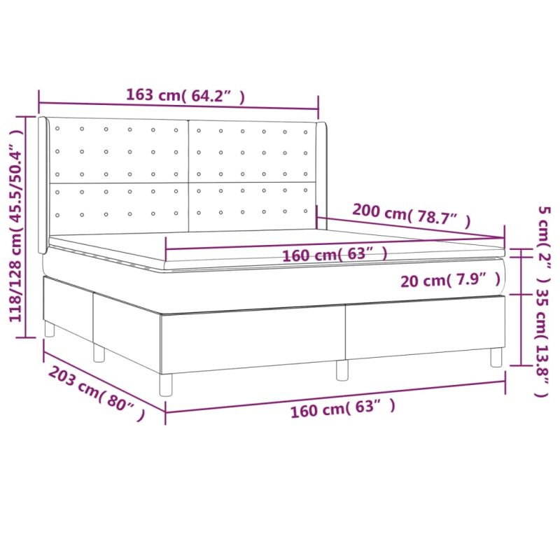 Използвайте това боксспринг легло, за да се насладите на спокоен сън! Предлага ви максимален релакс и приятен сън. Издържлива тъкан: Тъканта се отличава със семпъл и изчистен вид и е дишаща и издръжлива.Практична табла за глава: Горната табла за легло се регулира на височина според вашите предпочитания. Горната част на леглото ви осигурява отлична опора за гърба, докато седите в леглото, за да четете или гледате телевизия.Покет пружинен матрак: Вградените индивидуални покет пружини са известни с много високото си качество, като същевременно осигуряват високо ниво на издръжливост и адаптивност. Те могат ефективно да абсорбират шума и ударите, причинени от мятане и въртене.Средно твърда поддръжка: Матракът за легло перфектно осигурява допълнителна стабилност и точното ниво на твърдост, без да се жертва комфорта. Така той е идеален за спящи по гръб или корем.Благоприятен за кожата топ матрак: Протекторът за матрак има издръжлива, както и щадяща кожата материя, което я прави мека и удобна. Забележка:От хигиенни съображения матракът не може да бъде върнат, ако опаковката е отстранена или отворена.Всеки продукт се доставя с ръководство за сглобяване в кашона за лесно сглобяване.