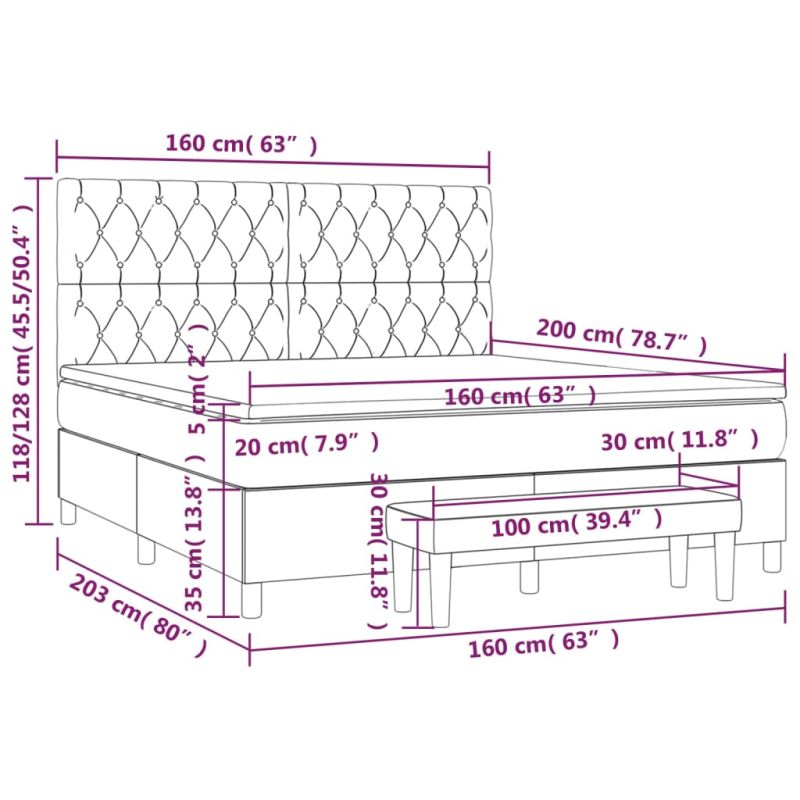 Използвайте това боксспринг легло, за да се насладите на спокоен сън! Предлага ви максимален релакс и приятен сън. Издържлива тъкан: Тъканта се отличава със семпъл и изчистен вид и е дишаща и издръжлива.Практична табла за глава: Горната табла за легло се регулира на височина според вашите предпочитания. Горната част на леглото ви осигурява отлична опора за гърба, докато седите в леглото, за да четете или гледате телевизия.Покет пружинен матрак: Вградените индивидуални покет пружини са известни с много високото си качество, като същевременно осигуряват високо ниво на издръжливост и адаптивност. Те могат ефективно да абсорбират шума и ударите, причинени от мятане и въртене.Средно твърда поддръжка: Матракът за легло перфектно осигурява допълнителна стабилност и точното ниво на твърдост, без да се жертва комфорта. Така той е идеален за спящи по гръб или корем.Благоприятен за кожата топ матрак: Протекторът за матрак има издръжлива, както и щадяща кожата материя, което я прави мека и удобна.Многофункционална пейка: Тази пейка може да служи като допълнително място за сядане във вашия дом. Също така може да се използва като пейка в края на легло. Забележка:От хигиенни съображения матракът не може да бъде върнат, ако опаковката е отстранена или отворена.Всеки продукт се доставя с ръководство за сглобяване в кашона за лесно сглобяване.