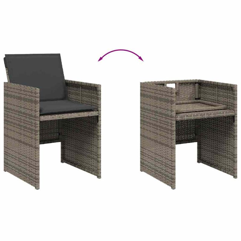 Този градински трапезен комплект е чудесен избор за вечеря на открито или просто за почивка в градината, задния двор или във вътрешния двор. Издръжлив материал: PE ратан, известен също като полиратан, е здрав синтетичен материал с малко необходима поддръжка, който прилича на естествен ратан. Той е лек, лесен за почистване и често се използва за външни мебели поради своята издръжливост и устойчивост на атмосферни влияния.Компактно съхранение: Тези столове имат падаща облегалка, която може да се сгъва, което улеснява съхранението им под масата. Когато са сгънати, те се побират под масата, оформяйки спестяваща място форма на куб. Удобна седалка: Тази мебел за открито, снабдена с плътно подплатени възглавници, предлага удобство при сядане.Калъф, който може да се сваля и може да се пере: Тези възглавници за седалки имат подвижни калъфи за лесно пране и поддръжка.Стабилен и лесен за почистване плот: Тази градинска маса има плот от акациево дърво, който е здрав, издръжлив и лесен за почистване с влажна кърпа. Добре е да се знае: За да сте сигурни, че вашите външни мебели ще останат красиви, ви препоръчваме да ги защитите с водоустойчиво покривало. Максимално 110 кг на седалка. Съобразете се с риска от открит огън и други източници на силна топлина в близост до продукта.
