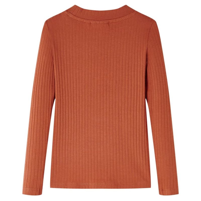 Нашата линия за детски дрехи е за достъпни, висококачествени и издръжливи ежедневни облекла за деца на възраст от 1,5 до 10 години. Нашата гама включва якета, пуловери, ризи и много други, с разнообразие от стилове, размери и цветове. Следвайки стандарта за високо качество на пазара, ние използваме висококачествени материали и усъвършенствани производствени техники. Тази детска тениска е с дълъг ръкав, обло деколте и прав модел. Тази тениска в цвят коняк има декорация с панделка. Детската тениска с дълъг ръкав е изработена от мека материя с 95% памук и 5% еластан за допълнителен комфорт и дишане. Добре е да знаете: Таблицата с размери на снимката предоставя размери за деца на възраст от 1,5 до 10 години, като обхваща височината, гърдите, талията и ханша. Лесно можете да намерите подходящата за вашето дете.