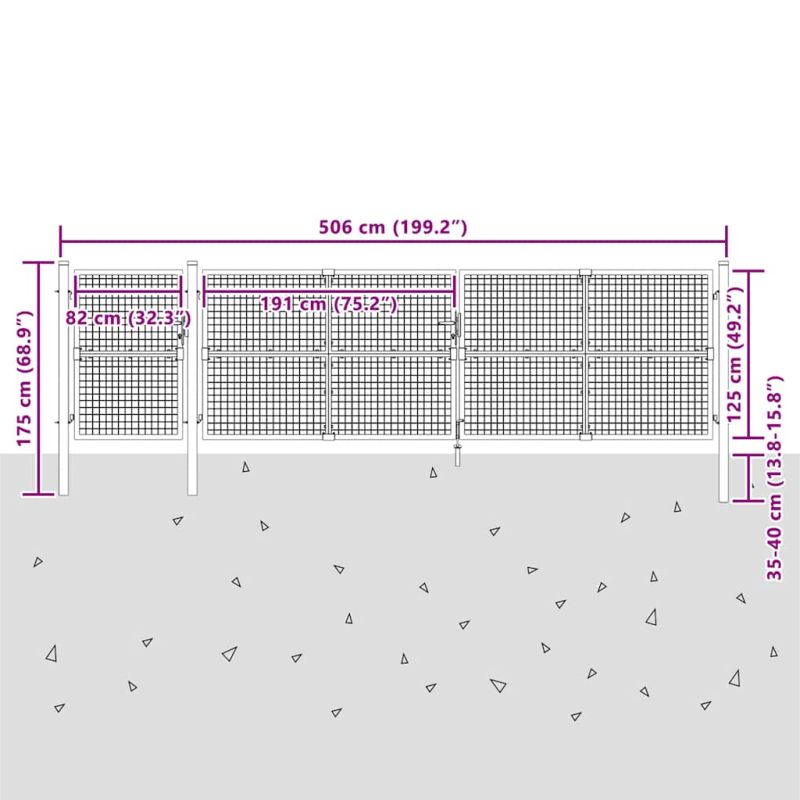 Градинската порта е чудесна комбинация от здравина, стабилност и устойчивост на корозия! Със сигурност ще бъде идеална входна точка за вашата градина, вътрешен двор или тераса! Издръжлив материал: Стоманата е изключително твърд и здрав материал. Тя предлага здравина и стабилност. Поцинковането осигурява по-добра защита срещу корозия и е полезно за продукти, които ще се използват на открито, както и при неблагоприятни условия.Заключваща се конструкция: Външната порта е снабдена със заземително колче за големия долен болт, което гарантира, че портата за вътрешен двор може да бъде лесно заключена.Лесно сглобяване: Стоманената градинска порта има два странични стълба с болтови панти за лесен монтаж.