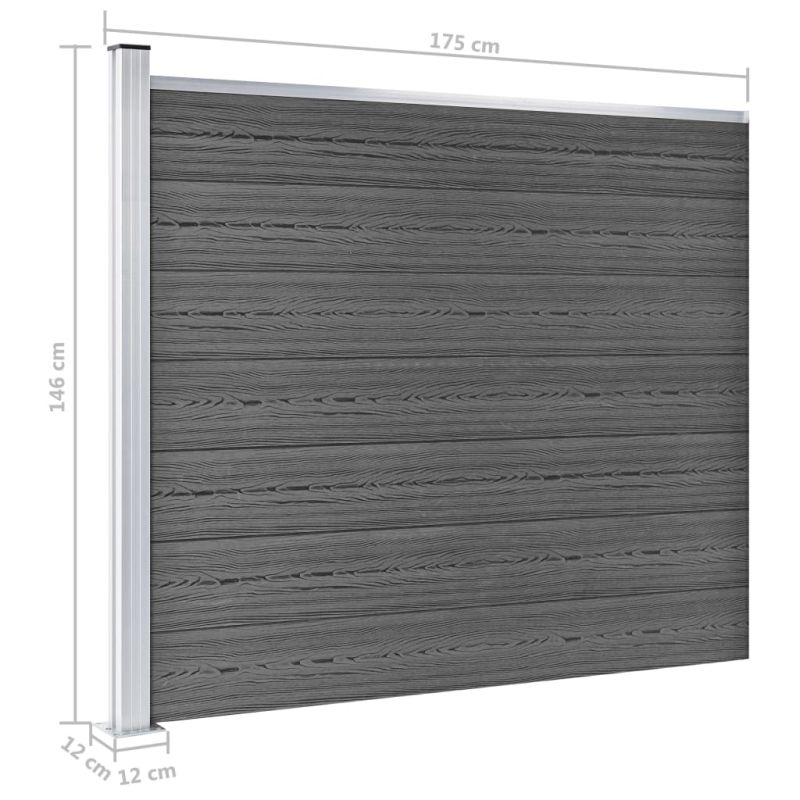 Комплект оградни панели, WPC, 872x146 см, черен