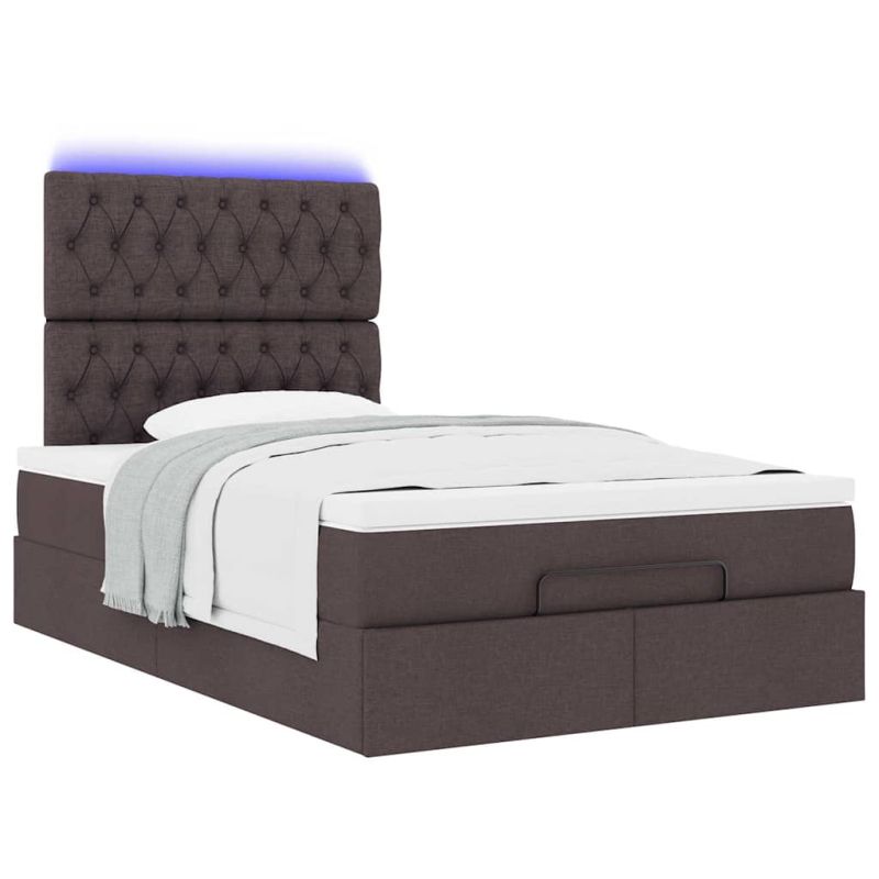 Османска легло с матрак и LED, тъмнокафяво, 120x200 см, плат