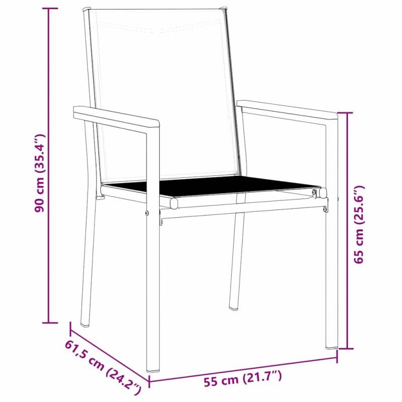 Този модерен комплект за хранене на градина е идеален за всеки, който цени стил и функционалност на открито. Състоящ се от изчистени линии и минималистичен дизайн, той ще преобрази градината и терасата в шикозни места, готови за събирания през пролетта и лятото. Материали: Изработен от здрава текстилна материя с бързосъхнещи свойства, комплектът включва прахово боядисана стомана, която е устойчива на времето и ще запази красотата си, идеален за градини с променливи сезони. Включени компоненти: Комплектът се състои от стилна маса и удобни столове с мрежести облегалки и стоманени подлакътници. Прахово боядисаното покритие показва, че всеки компонент е устойчив на избледняване, увеличавайки функционалността му. Характеристики: UV-устойчивите материали гарантират защита от дълго стоящо слънце. Тази характеристика комбинирана с прахово боядисаната стомана прави комплекта идеален за слънчеви зони, осигурявайки дълготрайност без компромиси с комфорт или стил. Препоръчителни приложения: Подходящ за всякакви външни сценарии, комплектът лесно се вписва в градински и терасови пространства, предлагаща визуално удоволствие и практичност за срещи и вечери. Поддръжка и грижа: За да удължите живота на продукта, използвайте защитно покритие, когато не го ползвате. Тази проста стъпка за защита предпазва комплекта от износване, оставяйки го важна част от вашата външна среда. Максимално 110 кг на седалка.