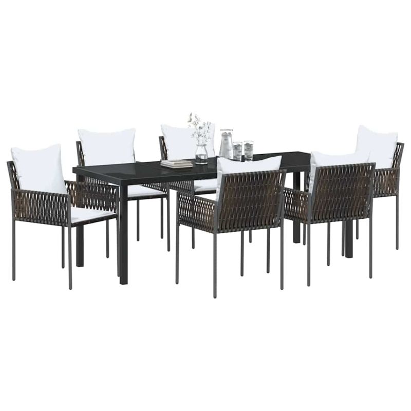 Комплект за хранене в градината 7 pcs Кафяв и черен ПЕ ратан