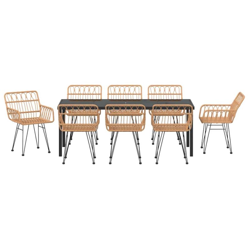 Този правоъгълен комплект за хранене на открито излъчва модерен стил и преобразува пространството ти на открито в красиво продължение на дома ти. Проектиран за пролетни и летни събирания, комплектът съчетава елегантност и функционалност с изчистен дизайн и минималистична декорация. Здравината и гъвкавостта му го правят идеален за всякакви поводи, докато създава страхотна атмосфера на терасата. Премиум материали Комплектът е направен от полирана ратанова материя, известна със своя комфорт и устойчивост. Стоманеният каркас и краката са прахово боядисани, което прави конструкцията много здрава, идеална за ежедневна употреба и дълготрайна надеждност на открито. Внимателно проектиран Правоъгълната форма позволява удобство при всякакви сценарии на хранене, независимо дали си с приятели или на семейна вечеря. Комплектът насърчава взаимодействието и е идеален за приятно хранене под слънцето или вечерни събирания. Всеки елемент е проектиран така, че да осигури хубав баланс между стил и функционалност. Изградена за всякакво време UV-устойчивите материали в дизайна устояват на дълго изложение на слънце, без избледняване или влошаване. Тази спецификация помага да запазиш визуалния вид и здравината на комплекта година след година, за да се наслаждаваш на красотата на откритото, без притеснения от износване. Модерна елегантност Черното прахово боядисано покритие придава съвременен вид, което добавя финес на всяка градина или тераса. Модерният стил е съвместим с различни декори – от авангарден до класически, така че лесно се вписва в всякакви открити пространства. Лесна поддръжка Поддържането на комплект за градински хранене е лесно с поставяне на защитно покритие, когато не се използва, за да го предпази от атмосферните влияния. Бързото съхнене улеснява почистването, позволявайки ти да се радваш на него по всяко време. Максимално 110 кг на седалка.