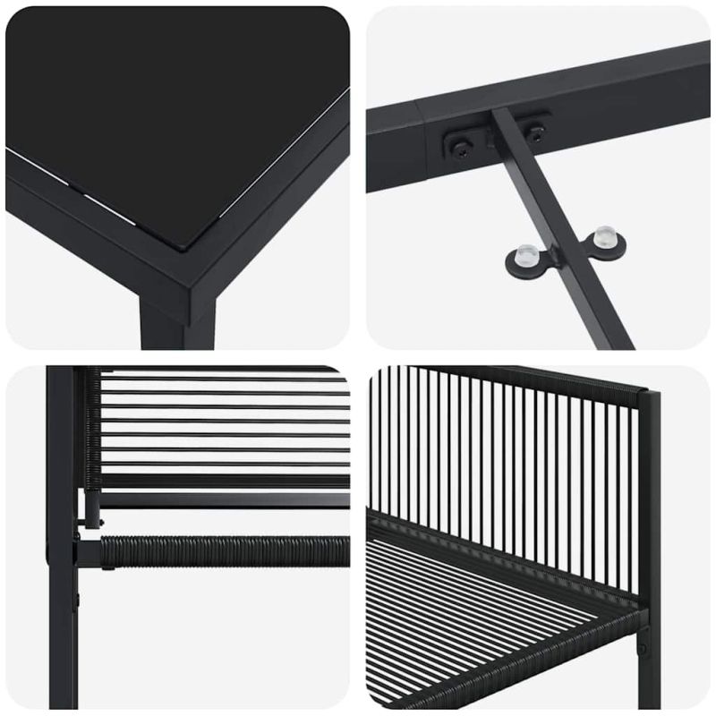 Този модерен комплект за хранене е създаден специално за да добави стил и комфорт на вашата градина или тераса. С елегантно черно прахово покритие, той е идеален за всякакви поводи, било то парти или спокойна вечер. Регулируемата му височина и удобните странични облегалки осигуряват комфортно преживяване, каквото и да е настроението ви. Издръжливост на полирания ратан: Направен от качествени материали, комплектът е проектиран да устоява на времето, осигурявайки дълготрайност през всички сезони. Устойчив е на слънце и дъжд, така че можете да се наслаждавате на стилно, но здраво решение. Гъвкавост с регулируема височина: Височината му варира от 81.5 до 63.5 см, което прави адаптацията лесна за всякакъв повод. Идеално е за домове, които имат нужда от гъвкавост. Здрава стоманена рамка: Проектиран с прахово боядисани рамки, комплектът предлага стабилност и сигурност. Праховото покритие предотвратява чипсове и надрасквания, а черният цвят допълва модерния вид. Компактна и сгъваема конструкция: Лесно се сгъва, което го прави икономичен на пространство, идеален за малки места. Лесна поддръжка: Почистването е бързо и лесно, а защитни покривала ще го предпазят, когато не е в употреба. Максимално 110 кг на седалка.