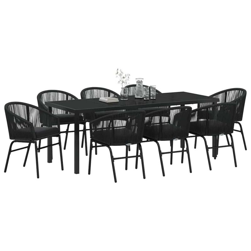 Този модерен градински трапезен комплект е чудесен пример за стил и функционалност, предназначен да направи времето ви на открито по-приятно. С изчистени линии и минимални детайли, той е идеален за пролетни и летни срещи в градината или на терасата. Създаден за външна употреба, черният му завършек и стилен дизайн съчетават естетика и практичност, превръщайки всяко открито място в уютно кътче за вечери или забавления. Материали: Този модерен градински комплект включва страхотни прахово боядисани стоманени рамки, полиратанови подлакътници и закалено стъкло. Всеки материал е избран за издръжливост и стил, осигурявайки дълготрайно присъствие на всяка външна територия. Прахово боядисаната стомана е здрава и устойчива на атмосферни условия, като запазва елегантния си вид през цялата година. Включени компоненти: С представителен гръб и подвижна седалка с дискретно закопчаване, комплектът предлага удобство и комфорт. Възглавничките осигуряват приятно натоварване при хранене, а лесно свалящите се калъфи правят почистването и поддръжката лесни, така че можете да се наслаждавате повече на него. Характеристики / Функция / Дизайн: Конструиран от UV-устойчиви материали, комплектът е направен да устои на слънцето и не губи своя вид, което го прави перфектен за откритите пространства. Съвременната му правоъгълна форма позволява различен начин на сядане за всякакви поводи. Препоръчителни употреби: Само за външна употреба, този комплект прекрасно се съчетава в градини и на тераси. Модерният му дизайн допълва зелените пространства и придава визуална хармония на откритите обстановки. Независимо дали организирате летен бранч или вечеря на залез, този комплект е подходящ за всякакви случаи. Поддръжка и поддържане: За да удължите употребата му и да запазите вида му, използвайте покривало, когато не го ползвате. Тази простичка стъпка ще го защити от неблагоприятните атмосферни влияния, запазвайки качеството му и осигурявайки много забавни мигове на открито.