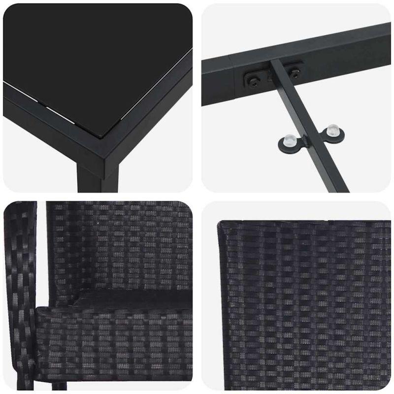 Този модерен комплект за хранене в градината придава стил и елегантност на всяко открито пространство. Със своите правоъгълни форми и стоманени елементи с прахово покритие, той предлага изчистен и модерен вид. Идеален е за пролетта и лятото, когато обичаш да хапваш навън, без да правиш компромис с красотата и функционалността. Съвременният му дизайн, с минималистичен декор и удобни подлакътници, допълва всяка балконска, пато или градинска обстановка. Премиум материали: Комплектът за хранене е от полиратан, който бързо изсъхва и е устойчив на атмосферни условия. Прахово боядисаните стоманени основи увеличават здравината и издръжливостта, придавайки елегантност. Съчетанието от материали е визуално приятно и практично за външна употреба, осигурявайки стилна настройка. Функционални компоненти: Черните стоманени крака са стабилна основа, която осигурява удобство. Завършеният гръб придава стилен вид от всяка страна. Комплектът има плоски подлакътници от полиратан, добавяйки комфорт. Уникални характеристики: Комплектът е проектиран с внимание към издръжливостта и предлага здравина за всякакви условия. С модерен стил и здраво покритие, той е идеален за редовно използване. Лесно поддържан, той подобрява хранителното преживяване. Многофункционална употреба: Идеален за балкони, патота и градини, комплектът служи за различни открити дейности. Независимо дали правиш летен бранч или вечеря с приятели, той е подходящ за всякакви поводи. Указания за поддръжка: За да запазиш комплекта, е добре да го покриваш, когато не се използва. Това защитава от сурови условия и удължава живота му. Редовното почистване с нежни средства поддържа оригиналното му състояние. Максимално 110 кг на седалка.