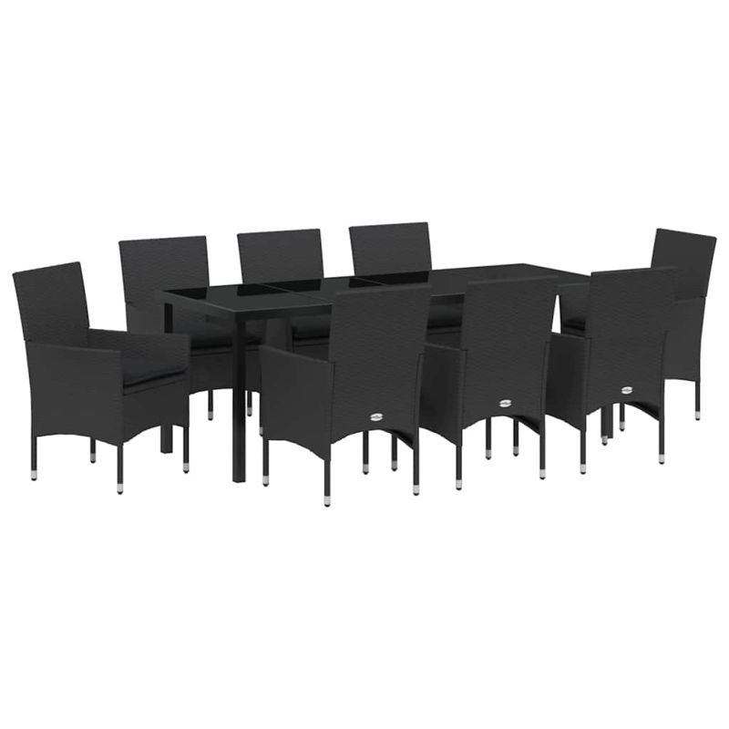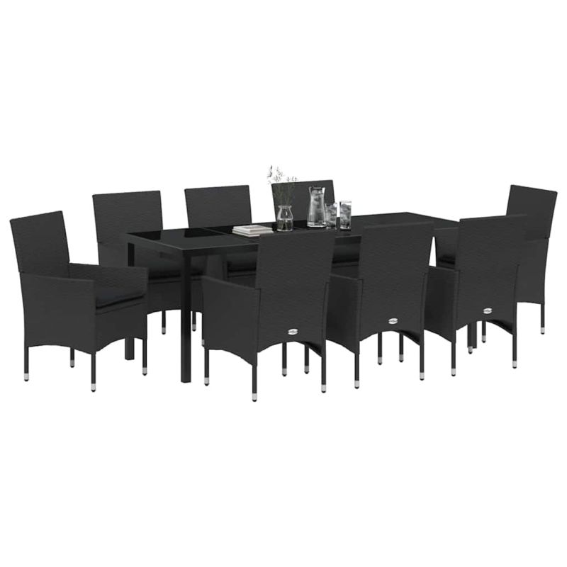 Комплект за хранене в градината 9 pcs Черно полиратан