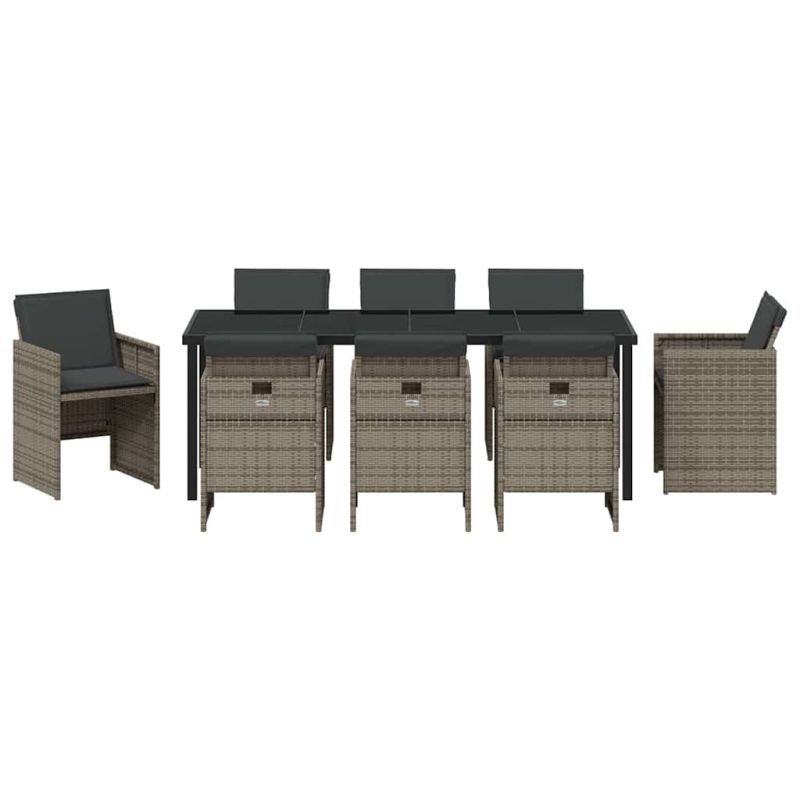 Комплект за хранене в градината 9 pcs Сив полиратан
