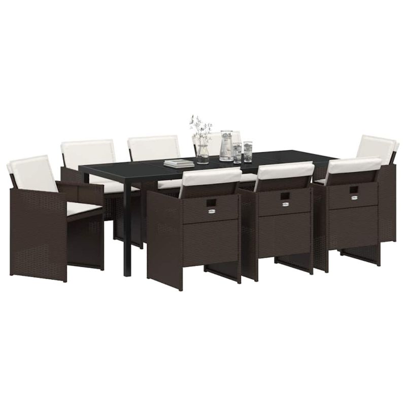 Начало Дом и градина Мебели Външни мебели Комплекти градински мебели Комплект за хранене в градината 9 pcs Кафяво полиратан