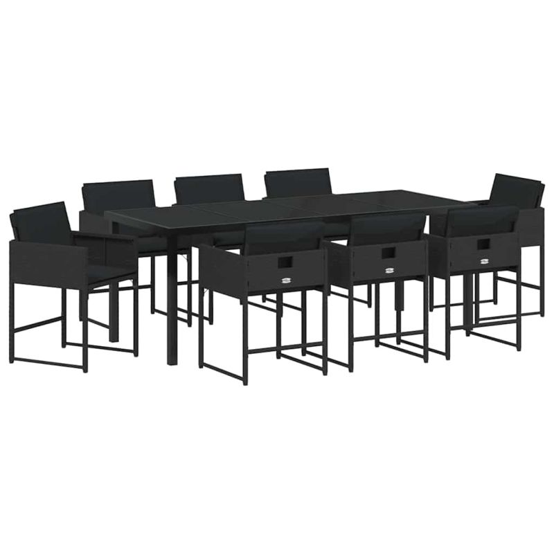 Комплект за хранене в градината 9 pcs Черно полиратан