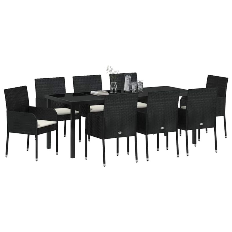 Комплект за хранене в градината 9 pcs Черно полиратан