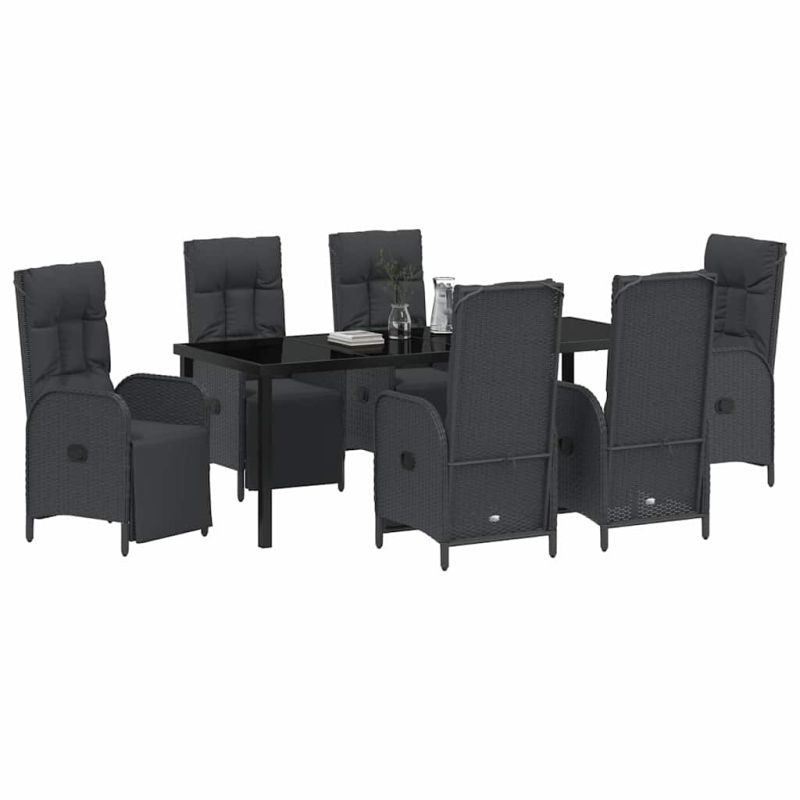 Комплект за хранене в градината 7 pcs Черно полиратан
