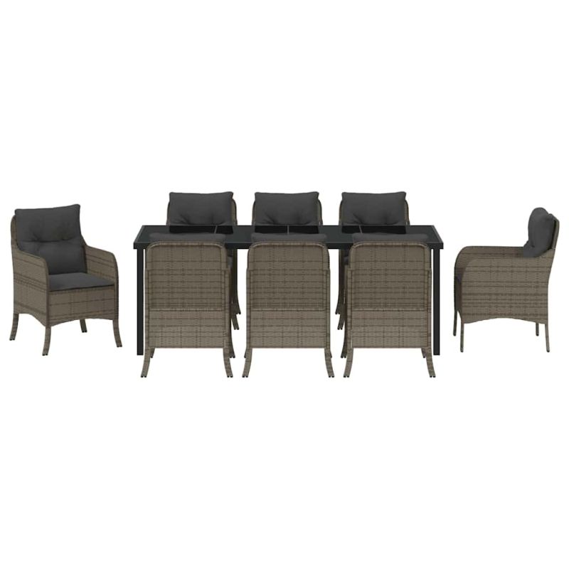 Комплект за хранене в градината 9 pcs Сив полиратан