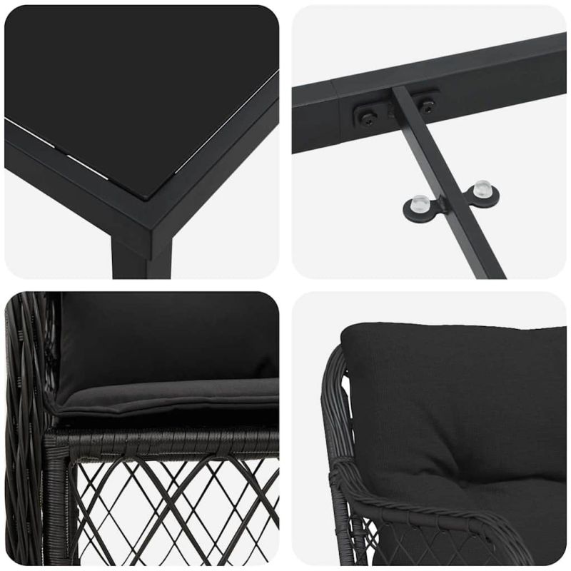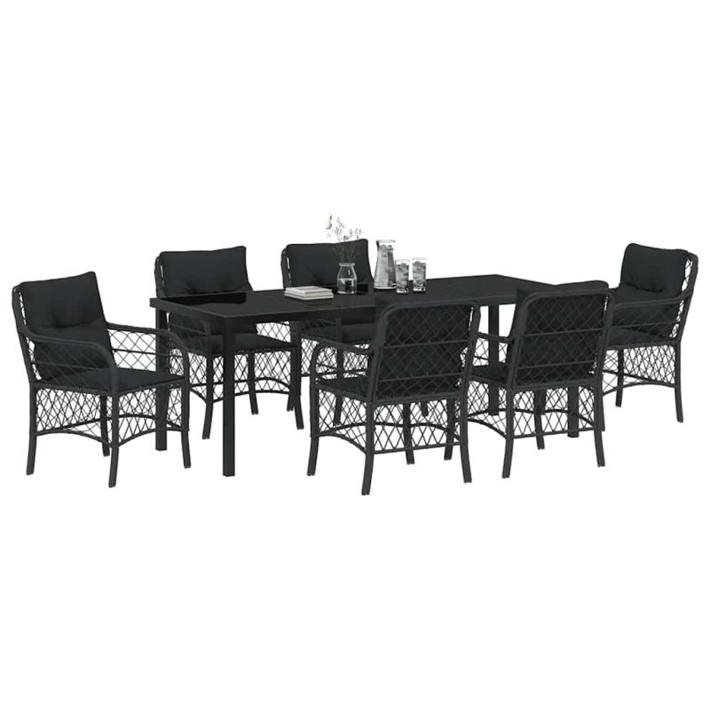 Комплект за хранене в градината 7 pcs Черно полиратан
