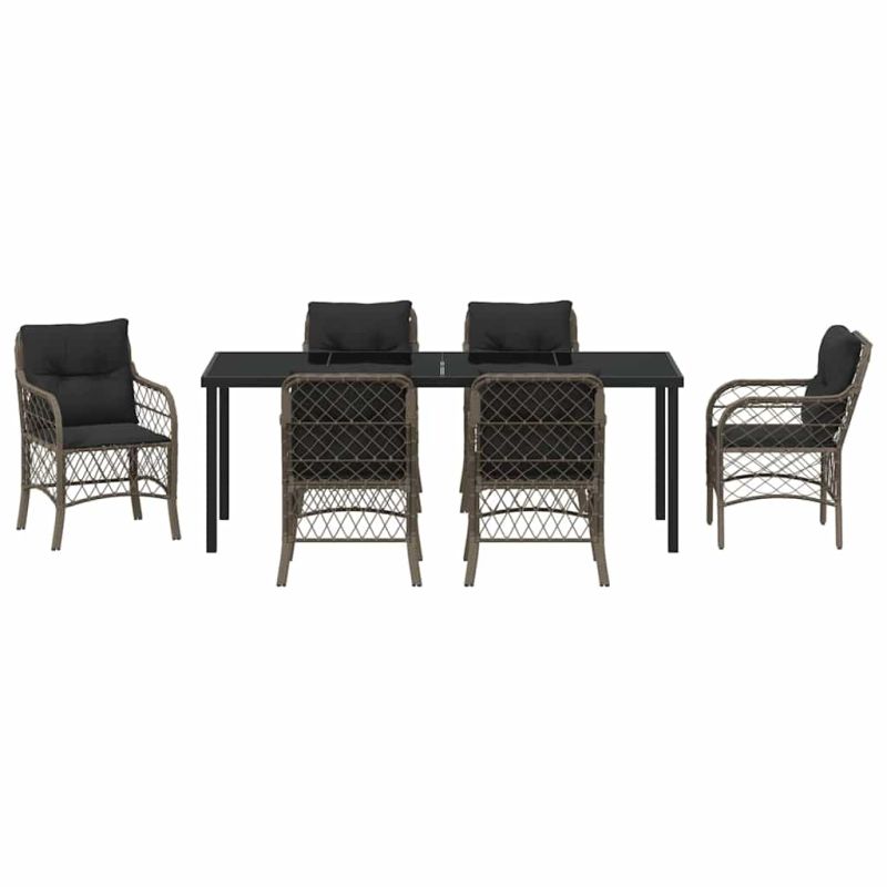 Комплект за хранене в градината 7 pcs Сив полиратан