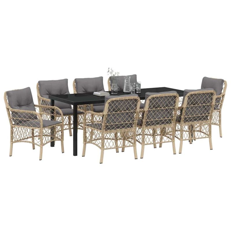Комплект за хранене в градината 9 pcs Бежово полиратан