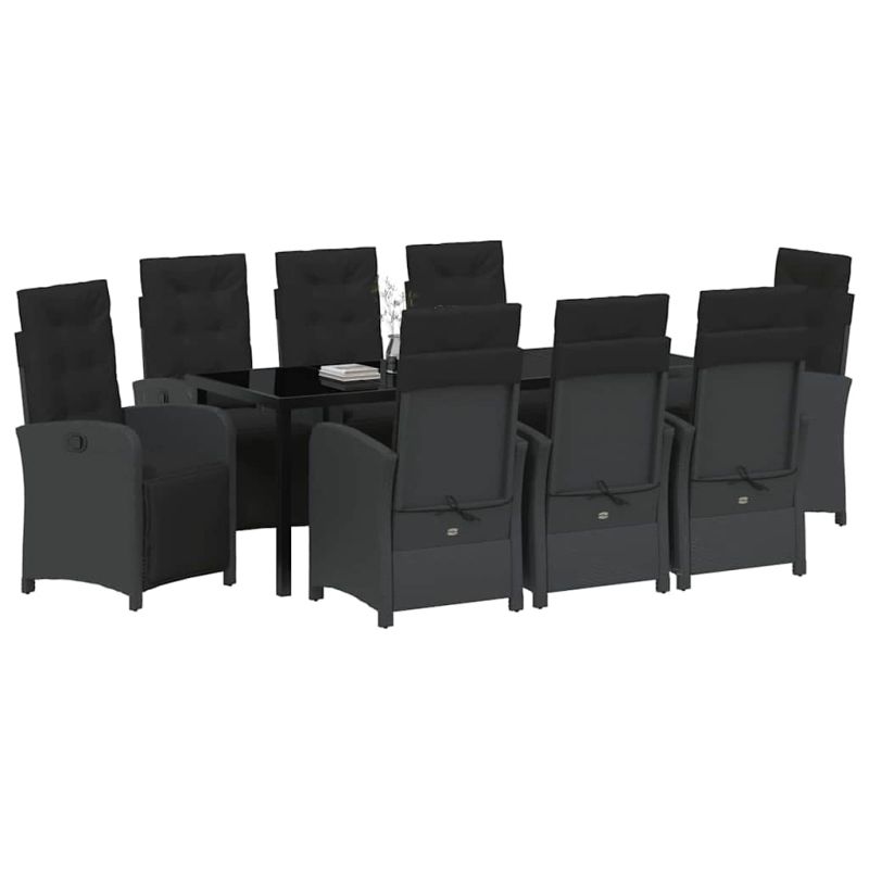 Комплект за хранене в градината 9 pcs Черно полиратан