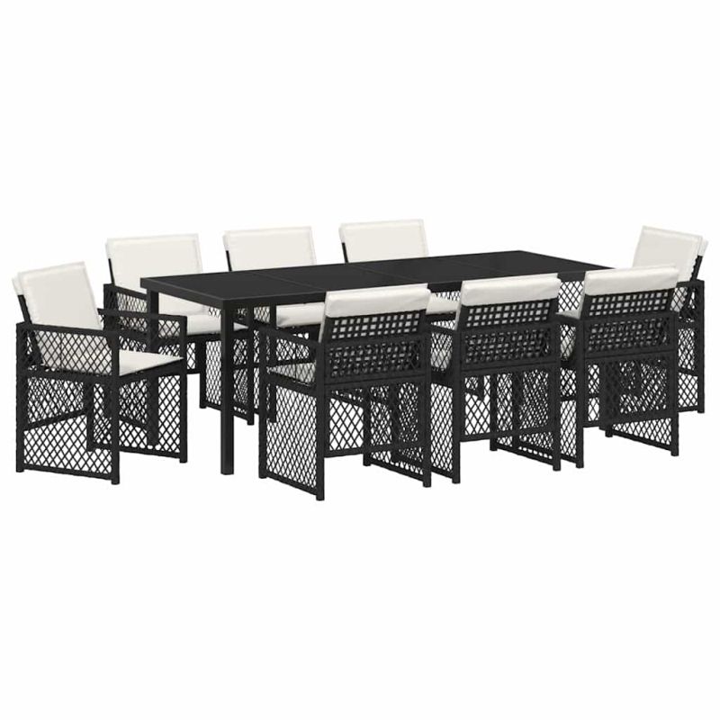 Комплект за хранене в градината 9 pcs Черно полиратан