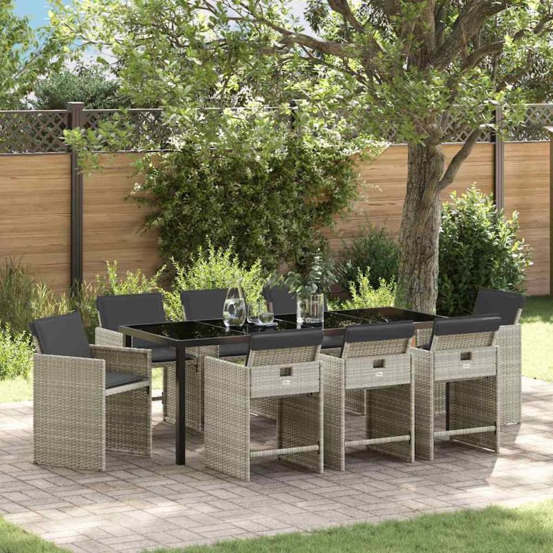 Комплект за хранене в градината 9 pcs Светлосиво полиратан