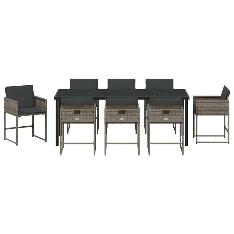 Комплект за хранене в градината 9 pcs Сив полиратан