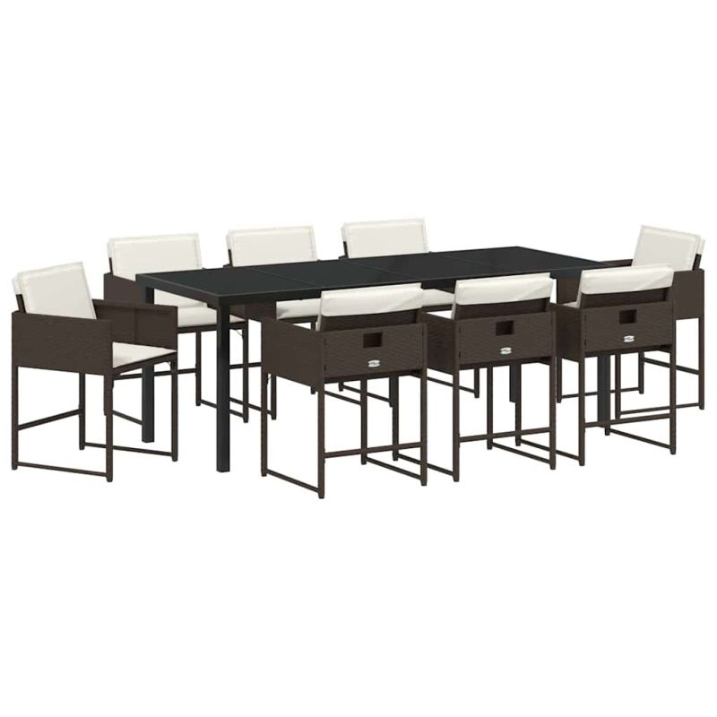 Комплект за хранене в градината 9 pcs Кафяво полиратан