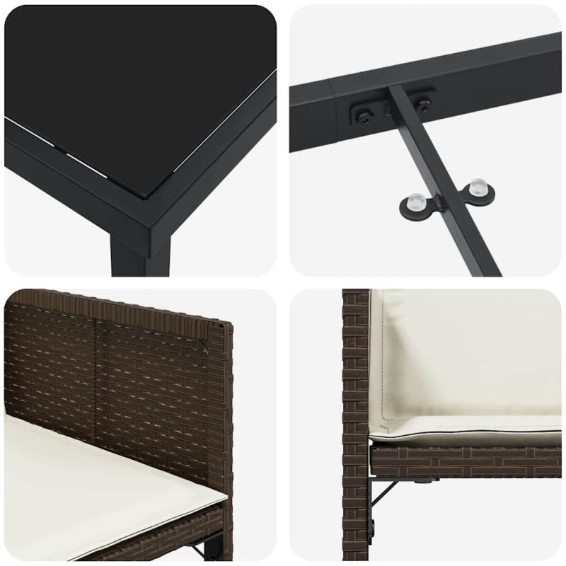 Този модерен комплект за хранене в градината излъчва съвременен шик с елегантните си линии и практичен дизайн, което го прави отличен избор за открити условия. Създаден е за градински тераси и спокойни балкони, а съчетава практичност с стил. Представи си слънчево следобедно чаено парти или вечеря при залез; този комплект е елегантен център, който предлага комфорт и красота на всяко събиране. Материали: Полиратан и стомана са внимателно подбрани за издръжливост, осигурявайки устойчивост на открито. Полиратанът предлага съвременна текстура, която е стилна и устойчива на влага, докато стоманата добавя стабилност и дълговечност, правейки това добро вложение за запазена елегантност. Включени компоненти: Този комплект включва столове с красиви облегалки и възглавници от полиестерно влакно за комфорт. Стилните крака осигуряват стабилност на различни повърхности, допълнени от полиратанни подлакътници. Функции / Дизайн: Стъклената повърхност на масата добавя нотка елегантност и е лесна за почистване, идеална за хранения и напитки. Проектиран с простота и функционалност, той е универсален елемент, който ще обогати всяко открито пространство. Препоръчителни употреби: Перфектен за градина и тераса, този комплект посреща приятели и семейство за хранене на открито или дълги следобеден разговори. Модерният стил лесно се вписва в различни външни среди, допълвайки красотата на твоята тераса. Грижа и поддръжка: За да запазиш безупречния вид, използвай покривало, когато мебелите не се ползват. Тази мярка ще помогне да се защитят мебелите и да се осигури дълготрайна удовлетвореност. Максимално 110 кг на седалка.