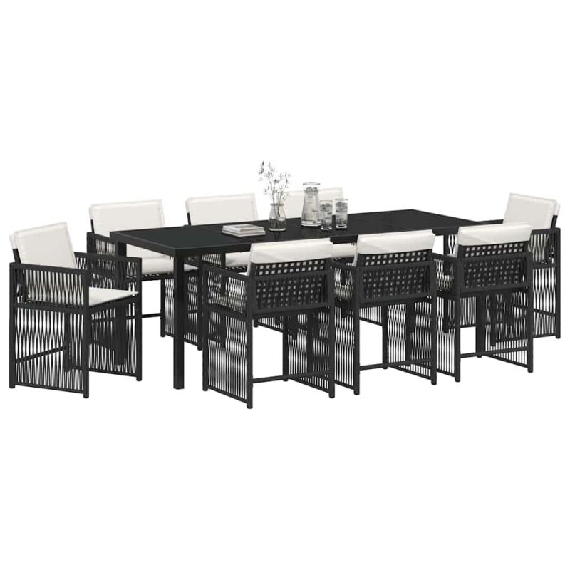 Комплект за хранене в градината 9 pcs Черно полиратан