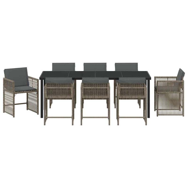 Комплект за хранене в градината 9 pcs Сив полиратан