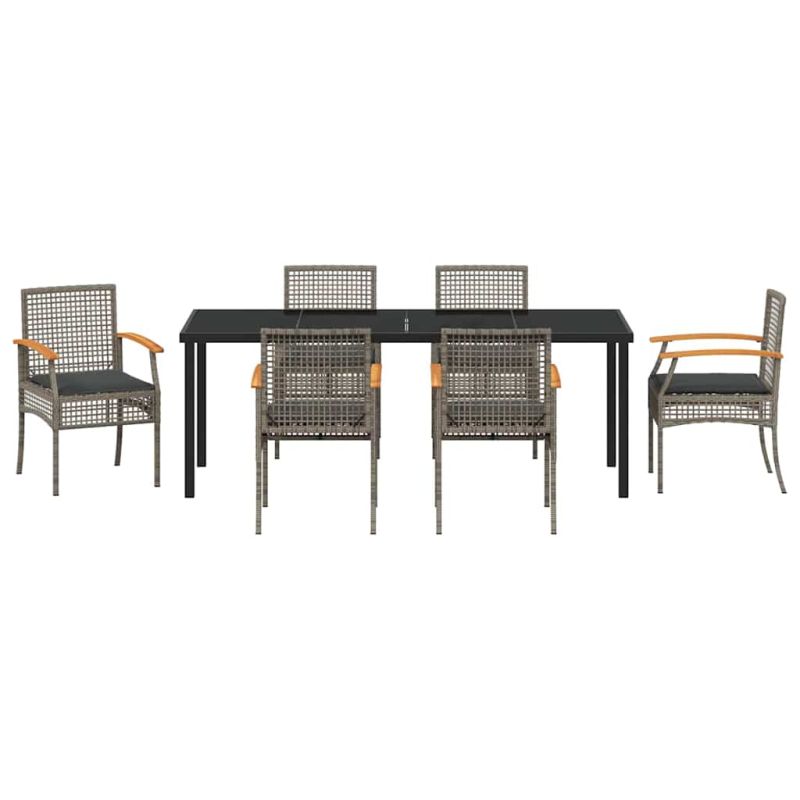 Комплект за хранене в градината 7 pcs Сив полиратан