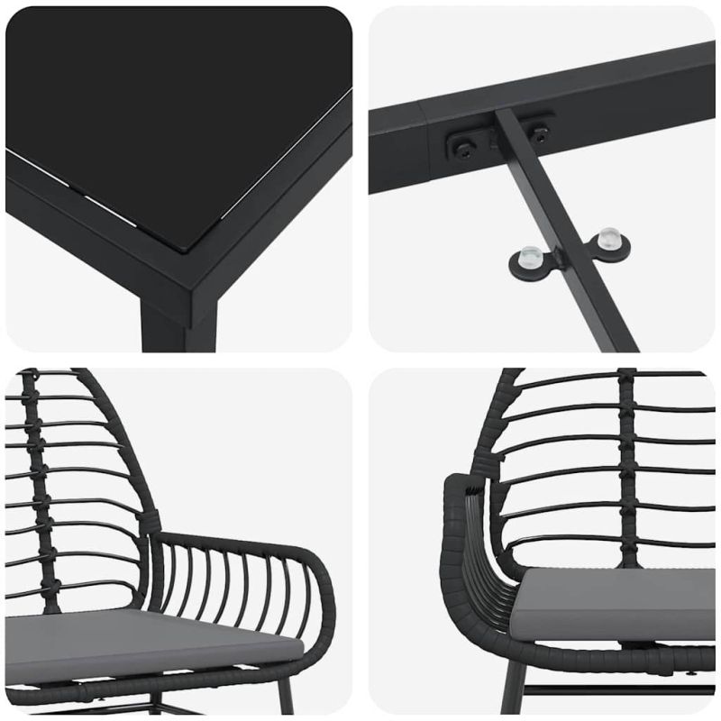 Комплект за хранене в градината 7 pcs Черно полиратан