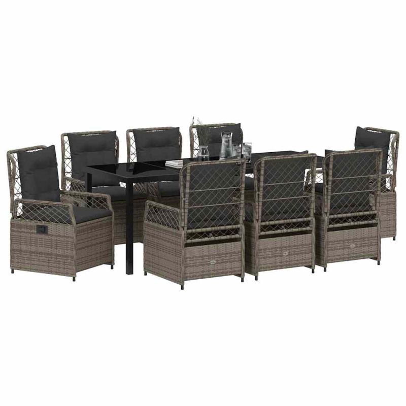 Комплект за хранене в градината 9 pcs Сив полиратан