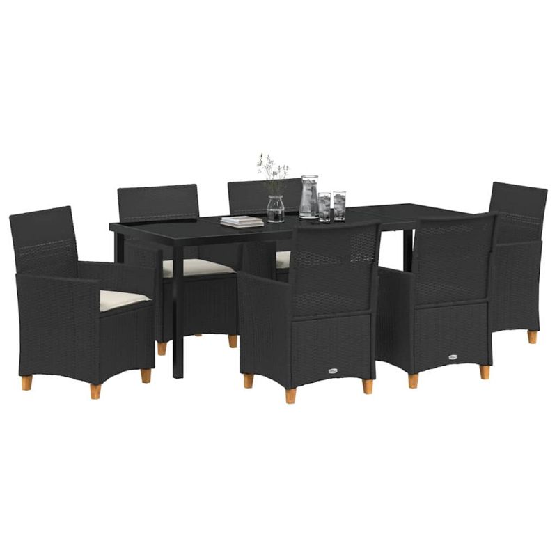 Комплект за хранене в градината 7 pcs Черно полиратан