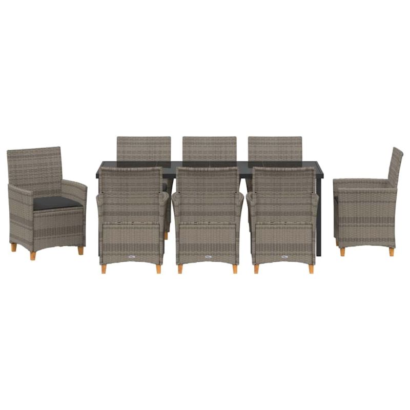 Комплект за хранене в градината 9 pcs Сив полиратан
