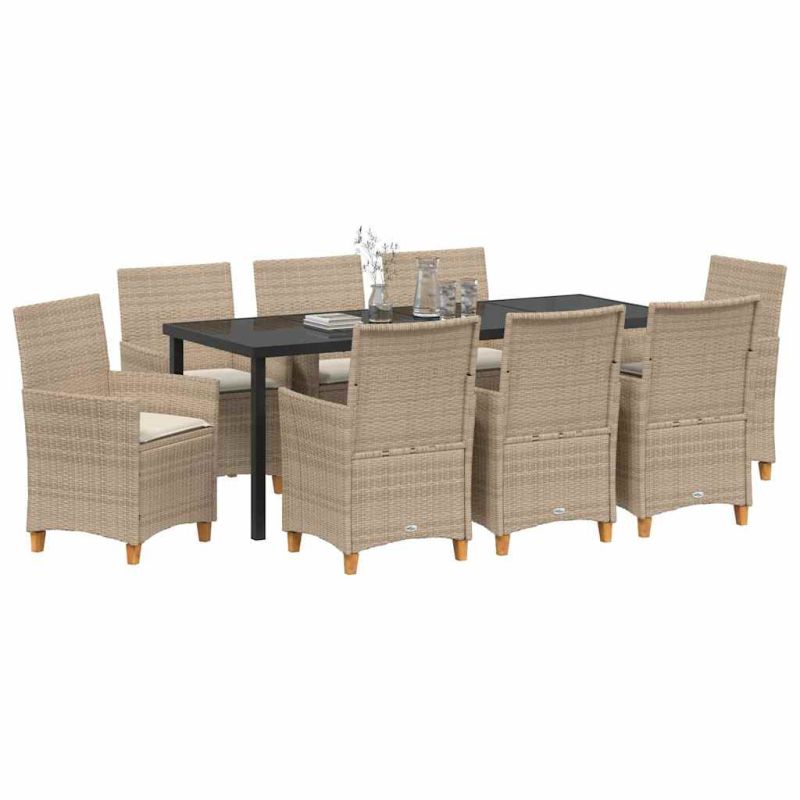 Комплект за хранене в градината 9 pcs Бежово полиратан