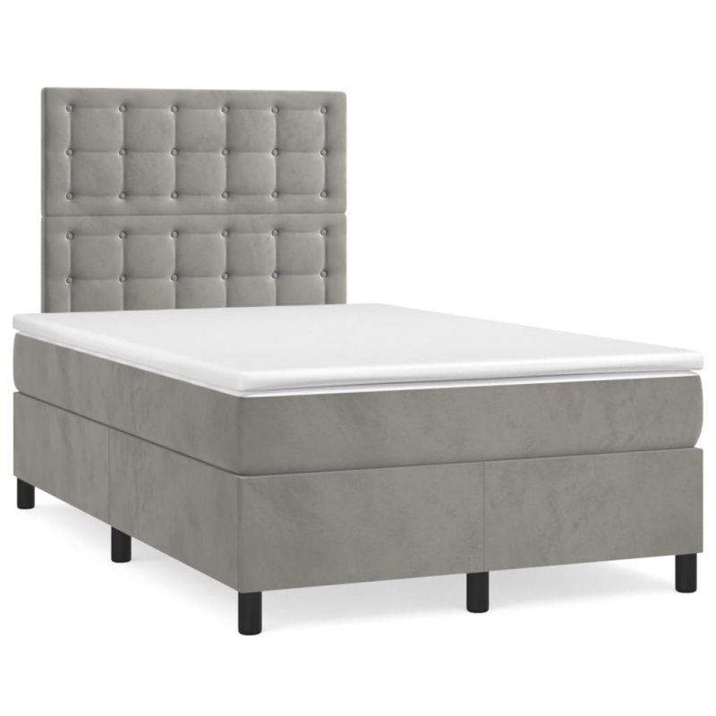 Боксспринг легло с матрак и LED, светлосиво, 120x190 см, кадифе