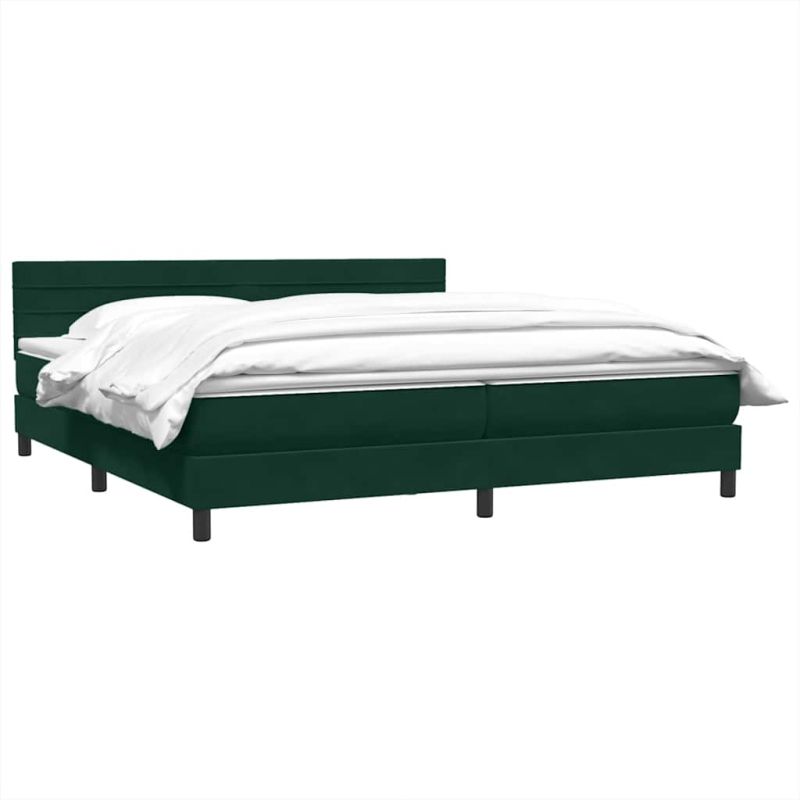 Боксспринг легло с матрак, тъмнозелено, 180x220 см, кадифе