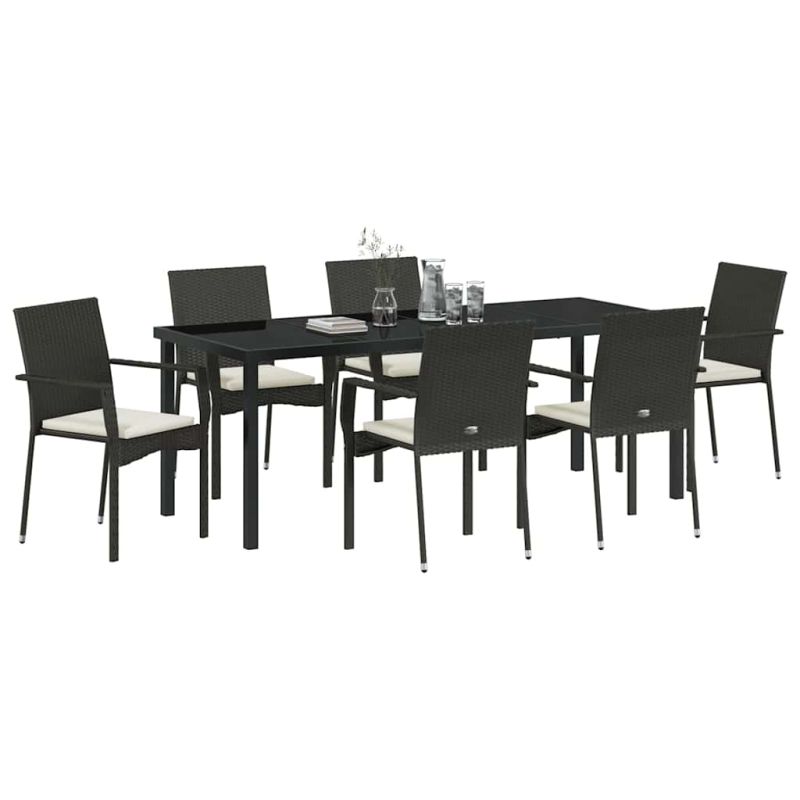 Комплект за хранене в градината 7 pcs Черно полиратан