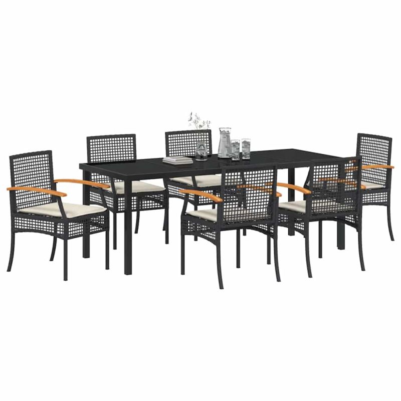 Комплект за хранене в градината 7 pcs Черно полиратан