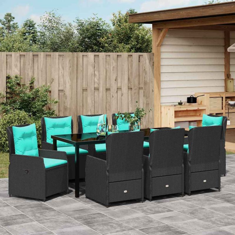 Комплект за хранене в градината 9 pcs Черно Полиратан